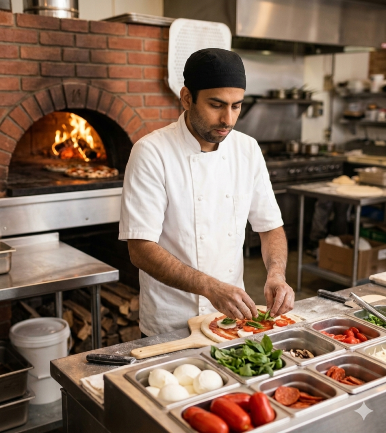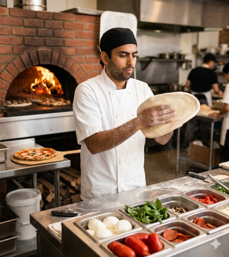 We believe that great food starts with the best ingredients. From the marinated shrimp in our Marinera pizza to the fresh vegetables in our vegan options, our chef ensures every slice and every dumpling meets our high standards. Living by our motto that “the best things in life come piece by piece,” Om Prasad Niure leads our team with a commitment to quality, ensuring every guest leaves with a smile.